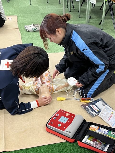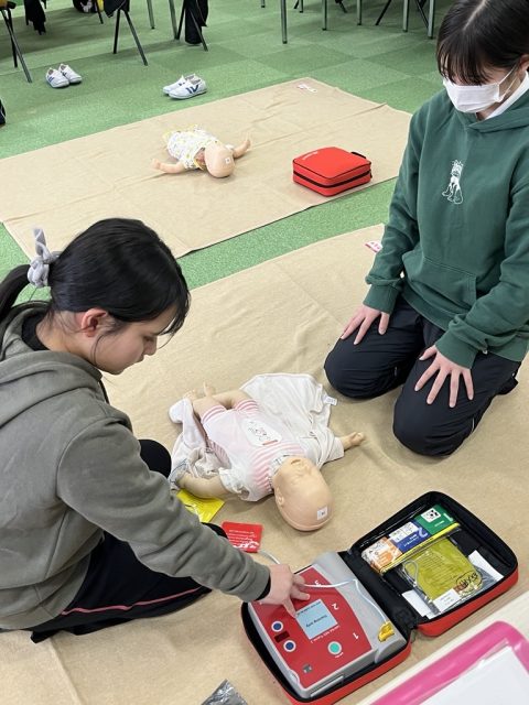 乳・幼児期の一次救命処置、誤飲・誤飲や骨折等の応急手当について知識と実践の両方を学びました。